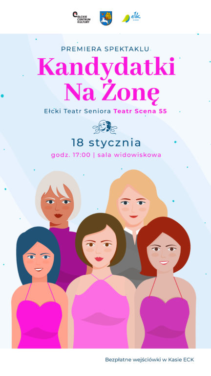 Grupa teatralna – Ełcki Teatr Seniora Teatr Scena 55 – działająca w Ełckim Centrum Kultury zaprasza na premierę spektaklu ,,Kandydatki na żonę” autorstwa Andrzeja Dembończyka.