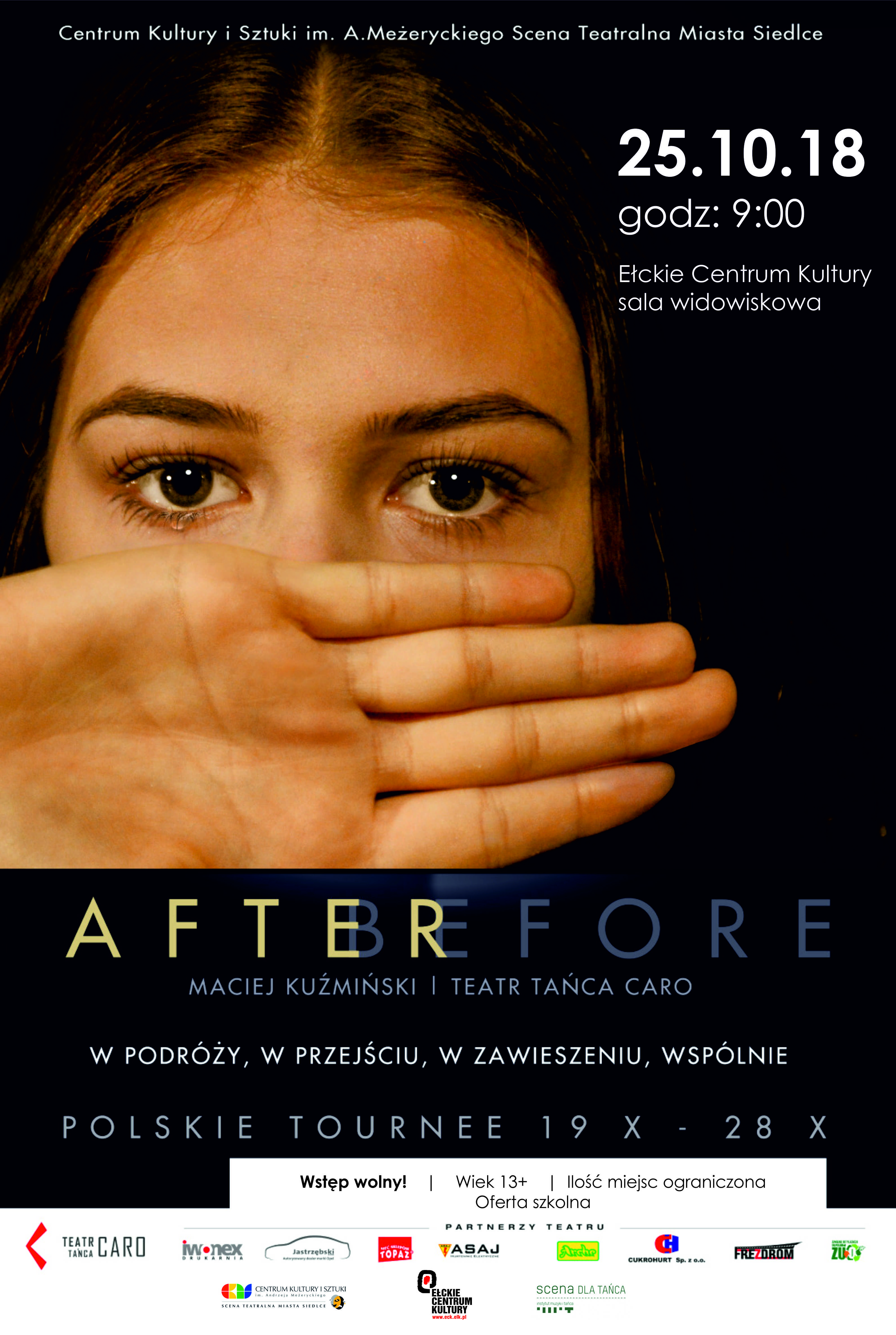 Spektakl After Before wygrał I-szą Nagrodę na Międzynarodowym Konkursie Choreograficznym w Witebsku w 2016r. Przedstawienie jako jedne z nielicznych zostało wybrane przez Instytut Muzyki i Tańca do prezentacji w ramach programu „Scena dla Tańca” wspierającego najlepsze polskie przedstawienia zgłoszone w 2017 r.”